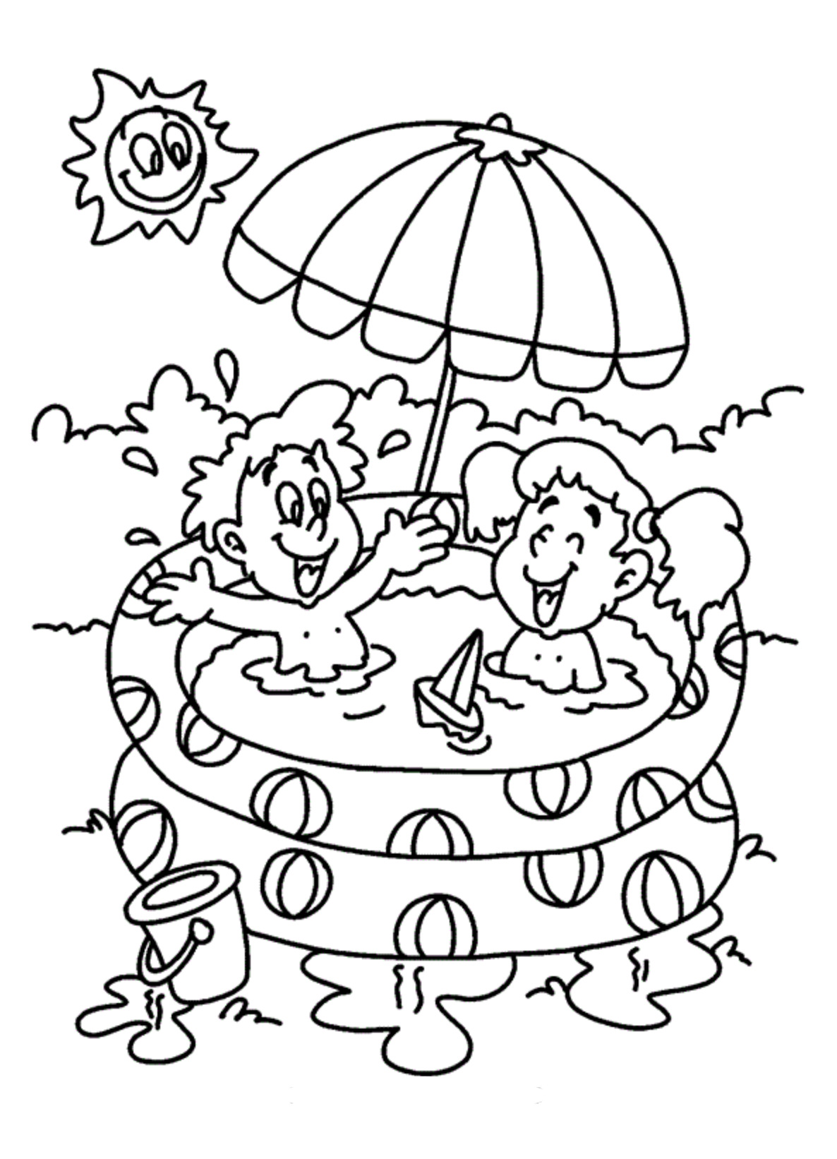 Zwemmen in het opblaasbadje kleurplaat
