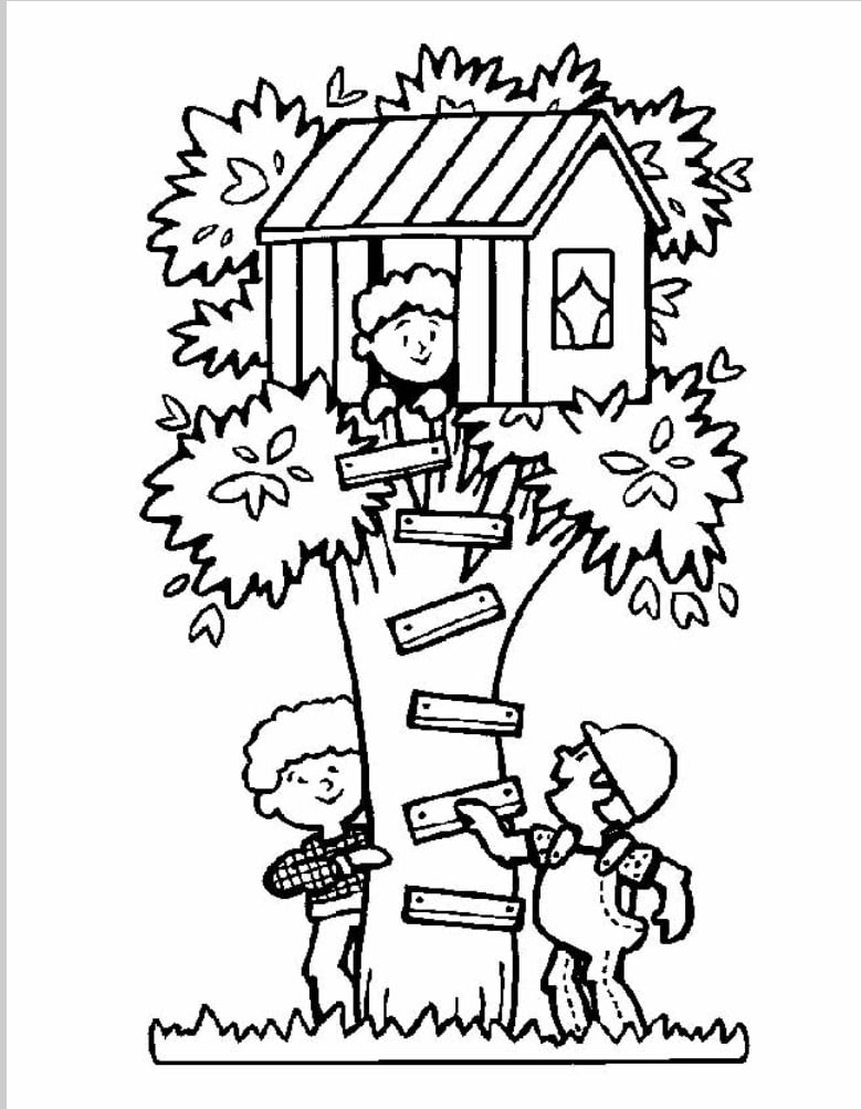 Boomhut maken kleurplaat